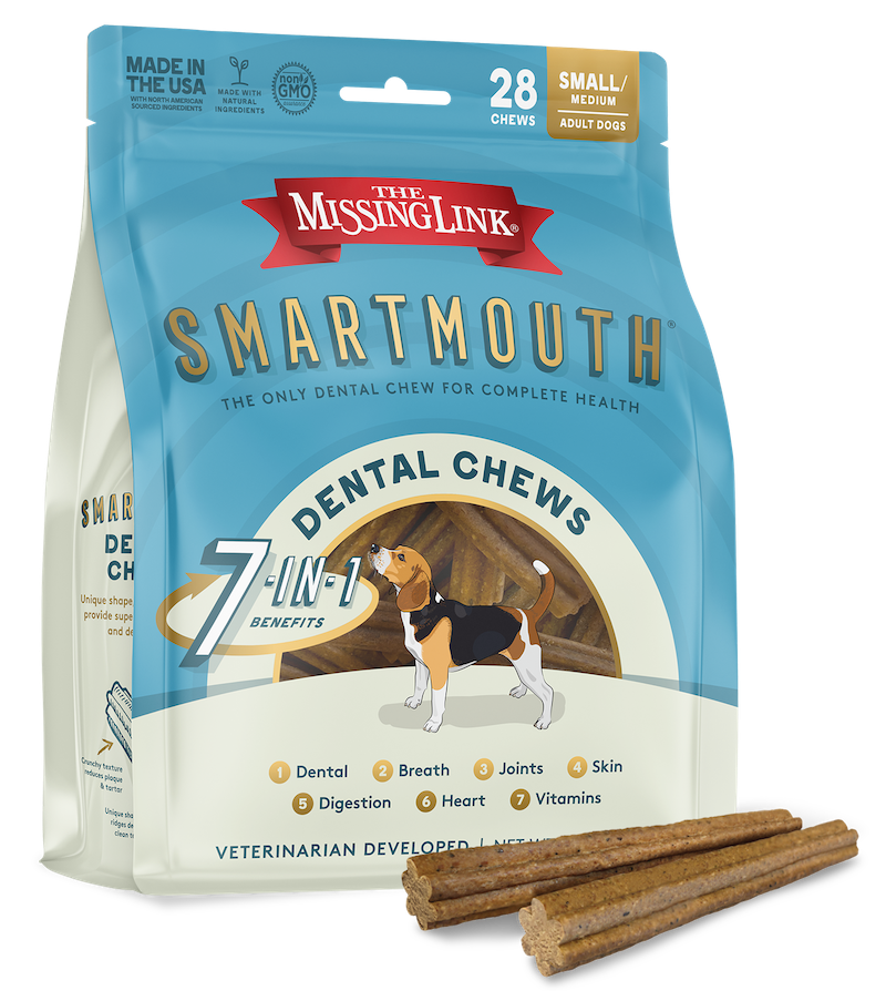 The holidays are a time to snuggle in under blankets and enjoy some one-on-one time with the people (and pets) you love. That definitely includes extra cuddles with your dog. But, if you don’t want to deal with bad breath, we have the perfect stocking stuffer. Smartmouth 7-in-1 Dental Treats from The Missing Link aren’t just deep-cleaning, breath-freshening dental chews that are perfect for all those holiday mistletoe moments. They’re made with a multi-tasking 7-in-1 formula that provides whole-body health support for teeth, breath, joints, skin, digestion, heart, and a daily vitamin supplement.