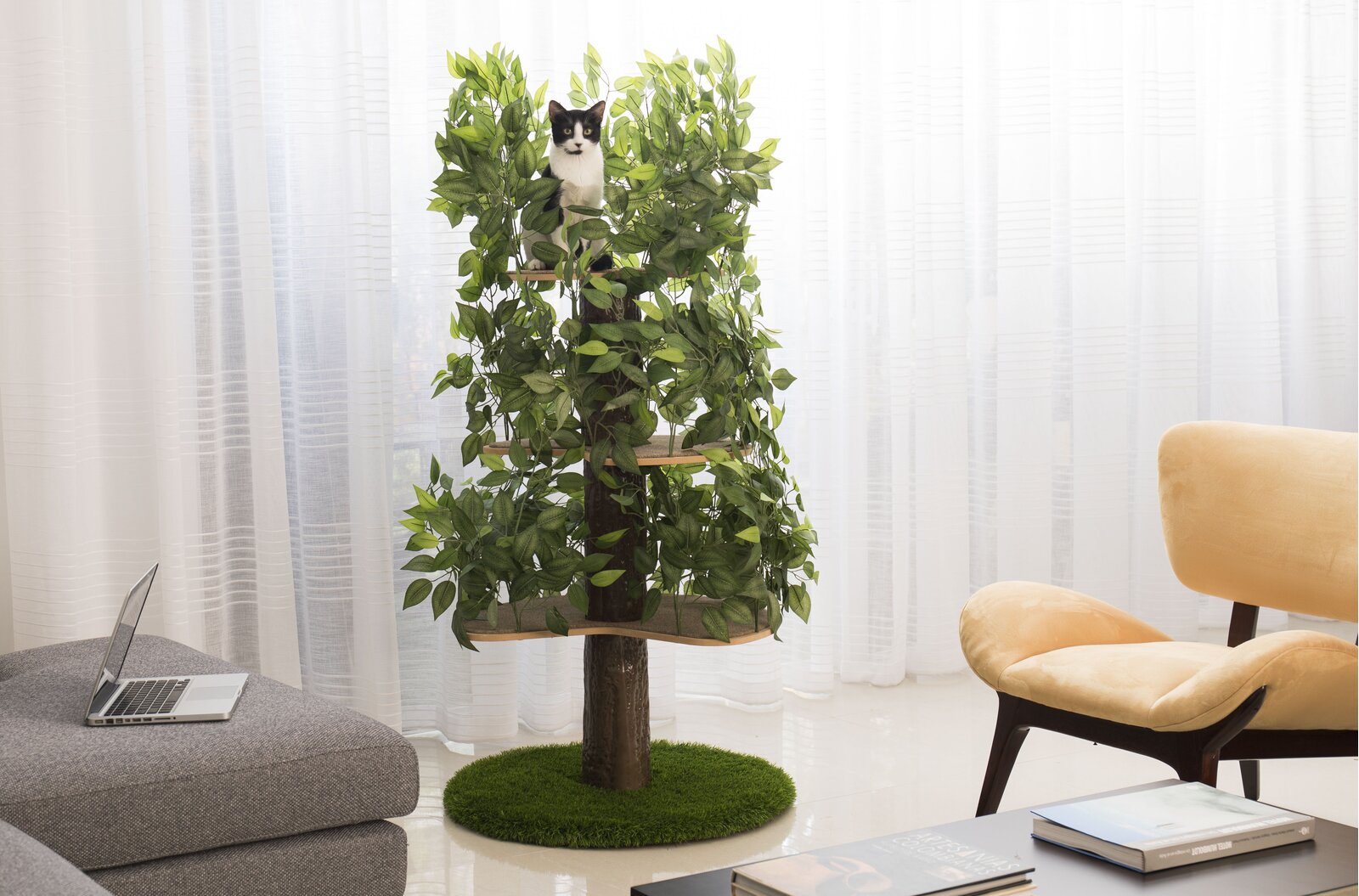 Each perch is adjustable and can be swiveled and secured in different positions to suit your cat’s preferences. The foliage offers plenty of opportunities to take cover or play peek-a-boo. And it’s a great alternative to traditional cat towers, with an aesthetic that fits perfectly into modern decor. Best of all, it’s easy to assemble and move. So you can keep it up for the holidays or all year round!
