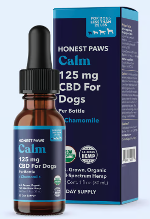 Help keep your dog calm with this CBD tincture from Honest Paws. It features USDA organic full-spectrum hemp oil with a 30-day money-back guarantee. Each bottle is made in the United States and includes organic chamomile for a calming and relaxing effect. It is non-GMO and contains no additives, filler oils, or chemicals.