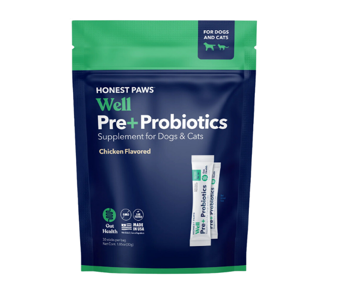 - Best Dog Probiotic + Prebiotic: Honest Paws Pre+ Probiotics Supplement for Dogs and Cats