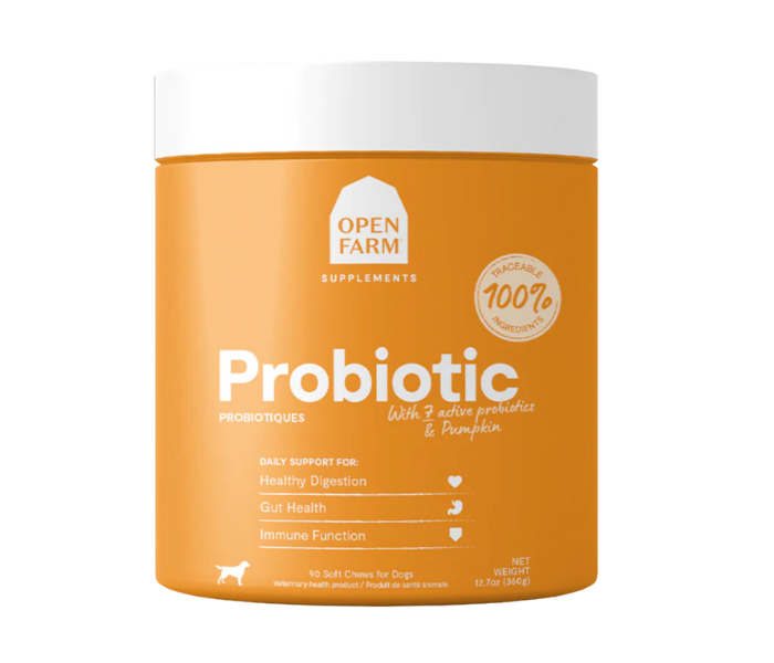 - Best Dog Probiotic with Pumpkin: Open Farm Probiotic Supplement Chews for Dogs