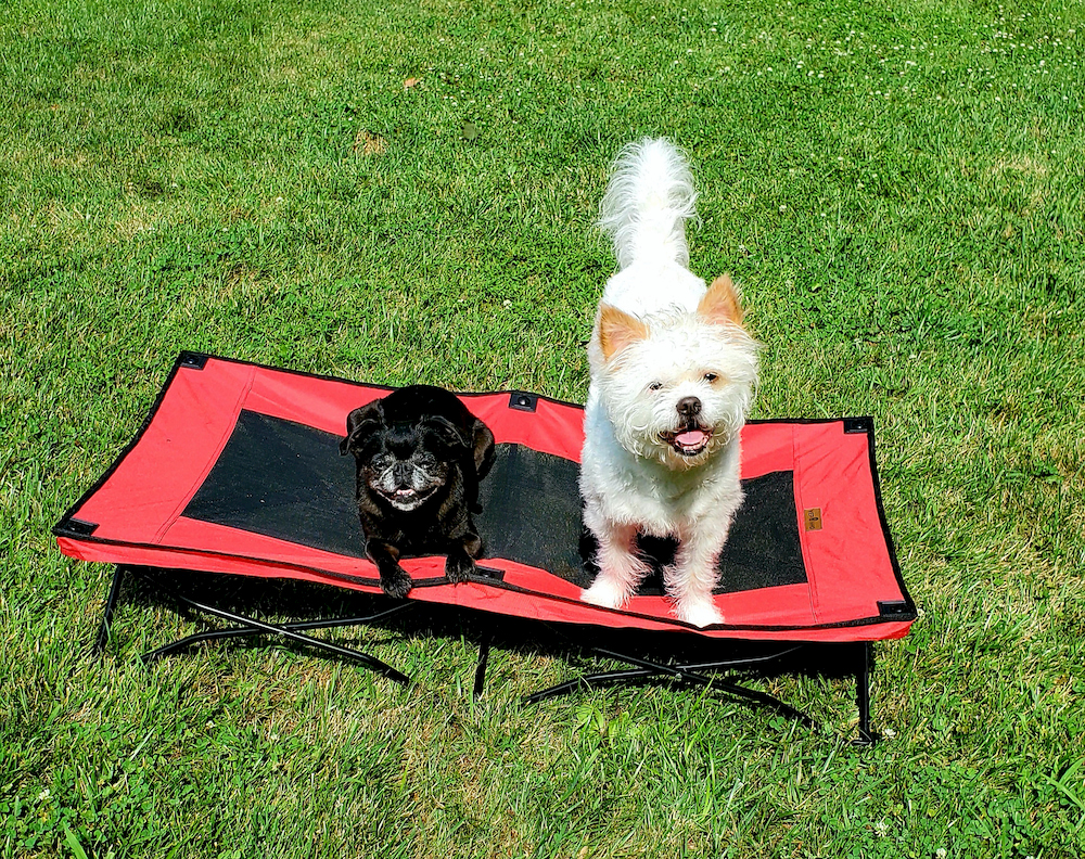 The basic elevated dog bed design is standard across all brands with variations like the fabric type, the materials used for the support legs, and their durability. Some beds also have special features like all-weather materials for year-round outdoor use, or an easily collapsible frame for camping and other outdoor activities.