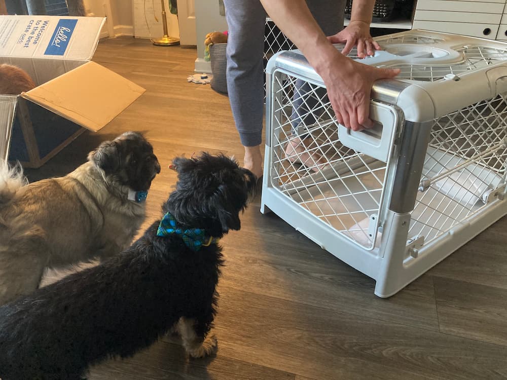 Once we received the crate, I was immediately pleased. There were easy-to-follow instructions included in the crate, but I didn’t need them. The design of the Revol dog crate is extremely intuitive. Setup took all of two seconds—just lift the sides and ceiling up and turn the handle to lock it into place.