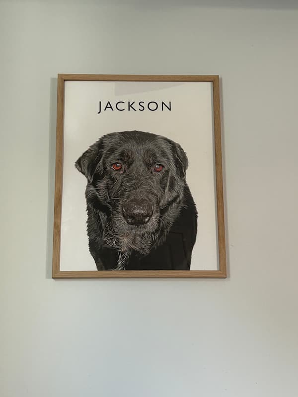 It captured the dog’s eyes perfectly and showed off his black fur with mixed coloring around the snout. It’s not easy to capture a black dog’s coloring in detail like this, but Haus and Hues did it well with their giclée printing technique. Send over a favorite high-quality digital photo with good lighting (smartphone photos are fine), and you’ll get an authorization email to approve the design before it’s printed and shipped out. The birch-colored wood frame elevated the photo and made it look more expensive than it cost. The 14-point semi-gloss paper gave it a professional-level element, and—thank goodness—it was easy to hang, no tools required. We had family and friends over recently, and everyone commented on the cute image.
