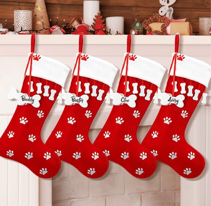 Paw Print 4-Piece Dog Christmas Stocking Set