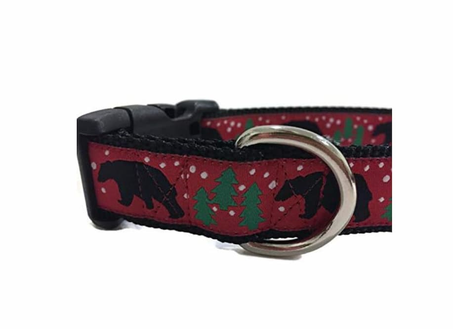 Christmas Dog Collar with Bears and Trees